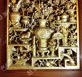 沐年出品的“緬甸柚木原木”雕花飾塊,基本為整塊整雕,其中部分大型的立體雕花是采用最初始的雕刻工藝-榫結(jié)構(gòu)組合,立體生動(dòng),經(jīng)過人工打磨(精磨)后天然的紋路和自然的光澤更顯圓潤(rùn)栩栩如生。
